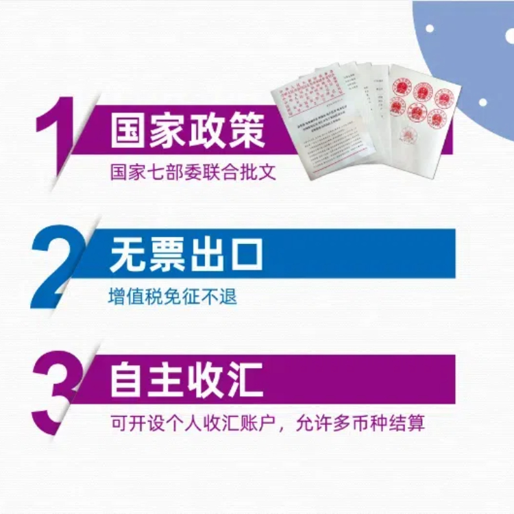 簡單說,它是國家專門為中小外貿企業、跨境電商賣家、外貿SOHO設計的出口以及外貿收款政策,主要解決“無票出口”“陽光收結匯”“簡便通關”、核定征收完稅等痛點。