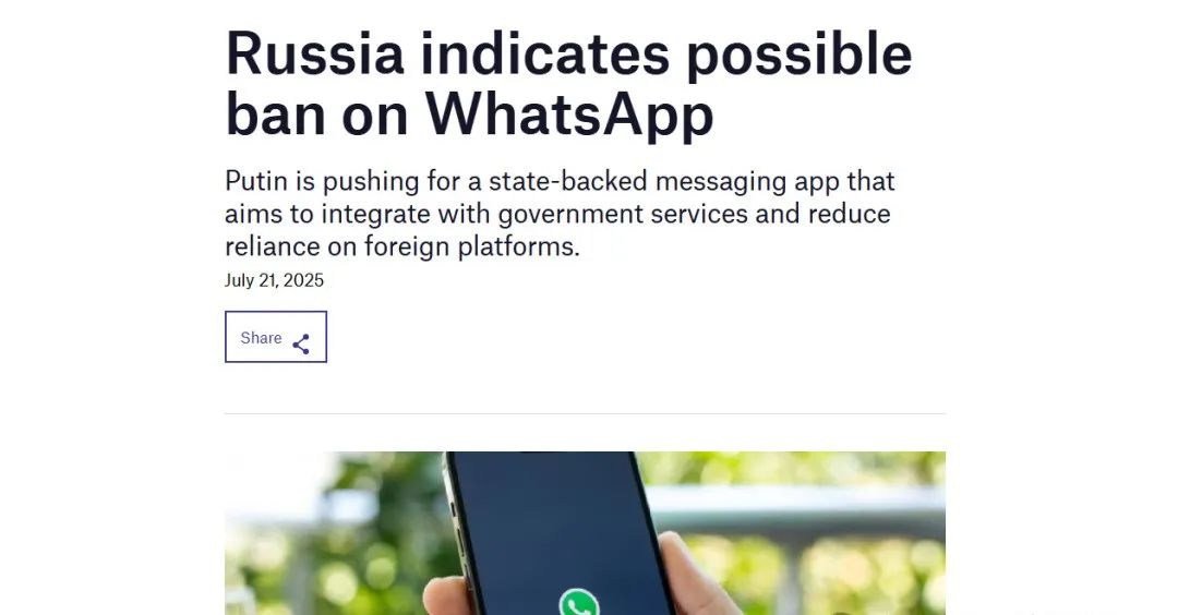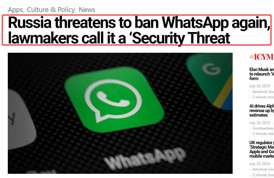 7月18日,俄羅斯國家杜馬信息政策委員會副主席安東·戈列爾金表示,WhatsApp Messenger需要做好退出俄羅斯市場的準備。他在其Telegram頻道中向該服務發出了這樣的呼吁。